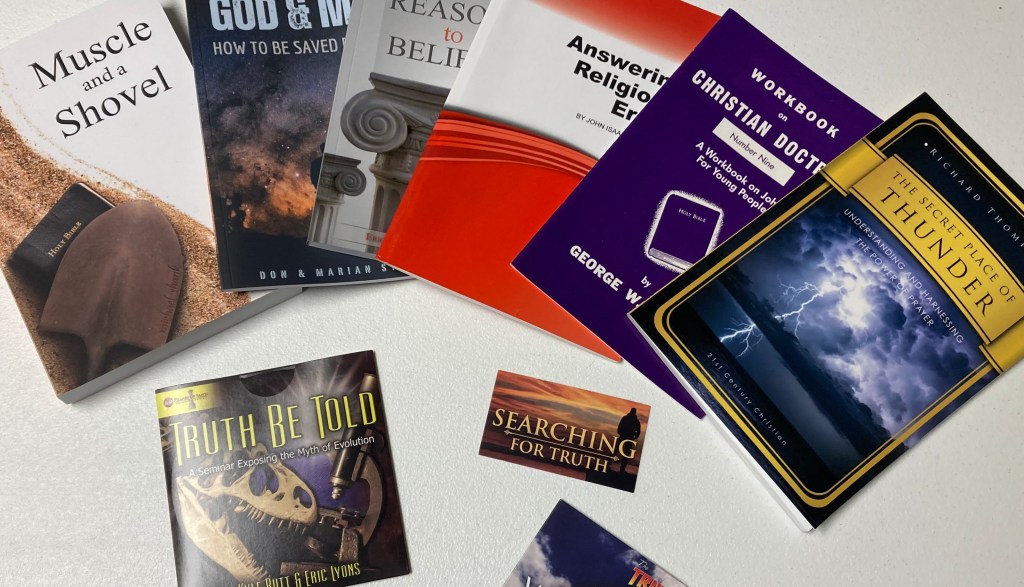 We offer a variety of study materials, including books, video tracks, and cards. Our material is published from several sources that specialize in church of Christ publications, such as Apologetics Press and Gospel Advocate. Our library consists of materials for non-Christians, young Christians, and long-time Christians alike, exploring themes such as denominationalism, prayer, science and the Bible, chapter-by-chapter breakdowns, and evidence of Biblical accuracy. Whether for evangelism or self-study, our materials offer decades of wisdom and thought.